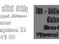 | 1952 | návěstní okrsky | SZD Brno 1 | Brno, Břeclav, Jihlava, Veselí n. M. | SZD Brno 2 | Vranovice, Kyjov, Skalice nad Svitavou, Vyškov na Moravě |