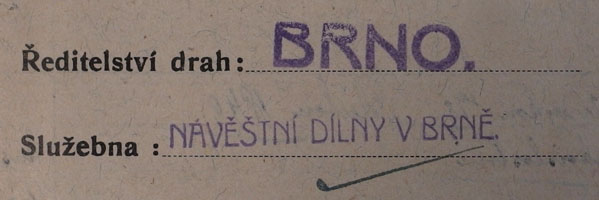 | 1938 | udržovací obvody návěstních mistrů | Brno I | Brno h. n. – Židenice | Brno II | Brno h. n. – Modřice ... dále Vranovice | Brno III | Svitavská pobřežní dráha, stará Tišnovka po Žďár n. S., Židenice – Adamov ... dále Skalice n. Sv. | Brno IV | Brno d. n. – Vladislav ... dále Jihlava | Brno V | Brno d. n., komárovská spojka, Vlára po Křenovice d. n. ... dále Kyjov | Brno VI | spojka Brno h. n. – Brno d. n., přerovská trať po Rousínov ... dále Vyškov na Moravě |